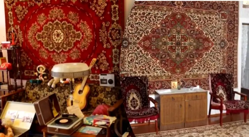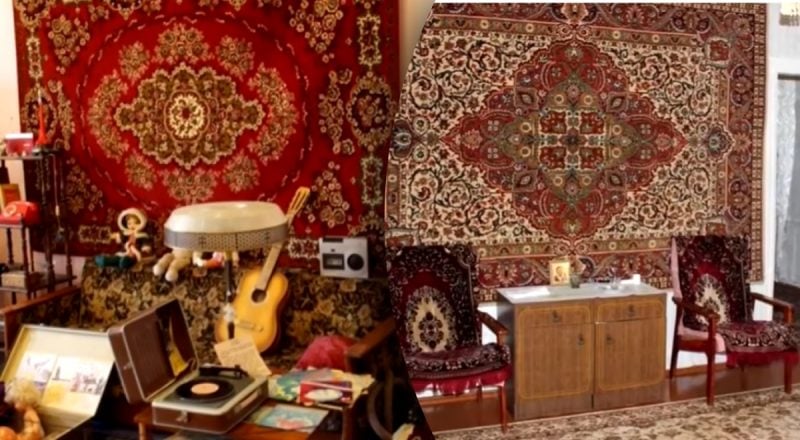 У Радянському Союзі спостерігався хронічний дефіцит товарів, зокрема якісних шпалер. Тому багато хто знаходив прагматичне рішення — замість того, щоб клеїти шпалери, можна було просто повісити килим.