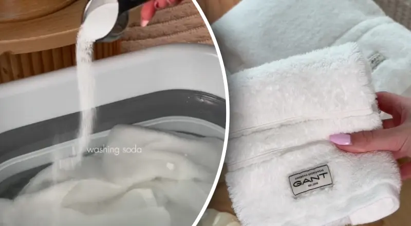 "Виперіть рушники у гарячій воді. Ви також можете пропустити частину замочування, якщо хочете швидко оновити свої рушники. Тоді просто додайте харчову соду в барабан пральної машини та білий оцет у відділення для пом’якшення тканини та оберіть цикл із гарячою водою", - пояснила жінка.