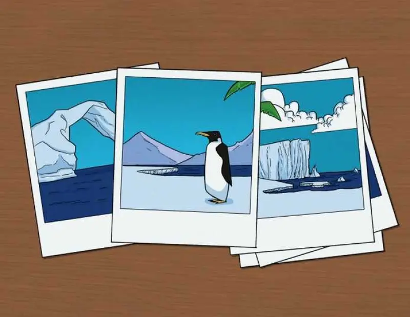 Правильна відповідь: помилка на малюнку полягає у тому, що на фотографіях зображено листя пальми, проте в Антарктиді немає пальм.