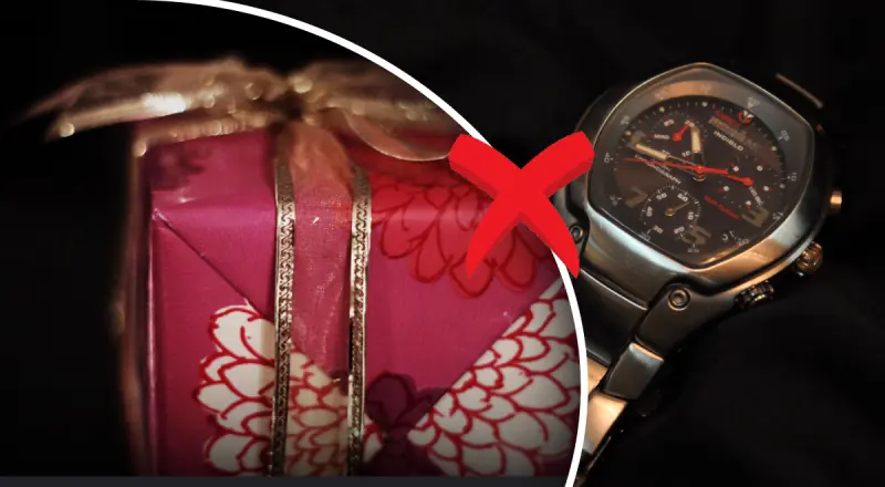 Ще одним небажаним подарунком є посуд. Попри те, що багато хто не дотримується цього правила, наші предки вважали неприпустимим дарувати один одному тарілки, миски чи інші столові предмети. Вважалося, що це може призвести до безгрошів'я. Тож згодом посуд почали дарувати хіба що з монетами всередині.