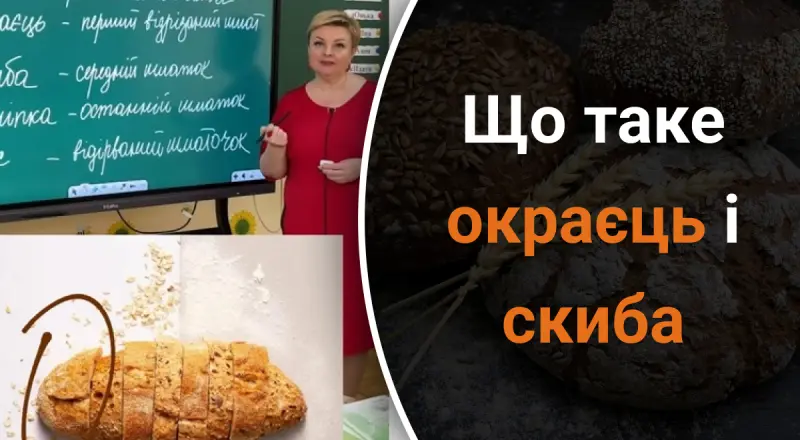 "Усім подобається духмяний запашний хліб. А чи знаєте ви, як називаються його шматочки? Окраєць – це перший відрізаний шмат, він знаходиться з краєчку. Скиба – це середній шматок, відрізаний повністю через усю хлібину. Відліпка – останній шматочок хліба", – зазначила вчителька.