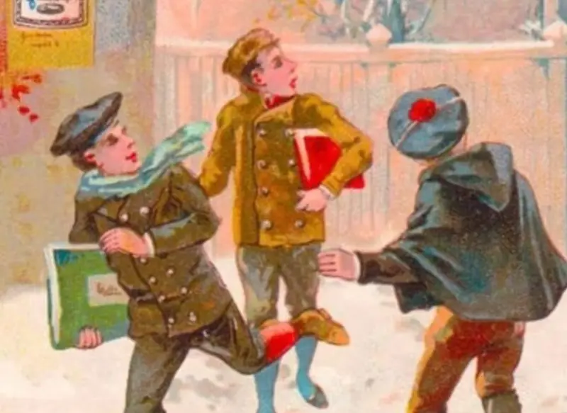 Перед вами вінтажна ілюстрація, що зображує групу дітей у засніженій обстановці. Але десь на цій картинці захований ідеально замаскований поліцейський. Ваше завдання: знайти його всього за 5 секунд. Тільки найгостріші уми можуть виконати цей подвиг вчасно. Ви готові? Давайте почнемо!