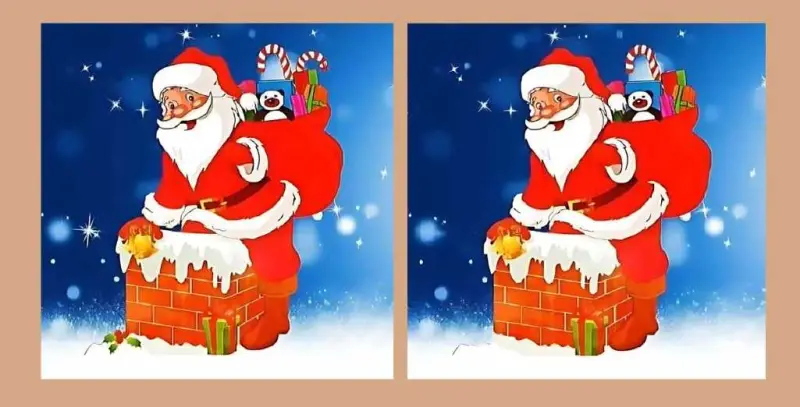У цьому завданні "Знайдіть відмінності" можна побачити дві однакові картинки Санта Клауса з подарунками. Хоча на перший погляд дві картинки здаються ідентичними, але це не так. Між двома картинками є три відмінності.