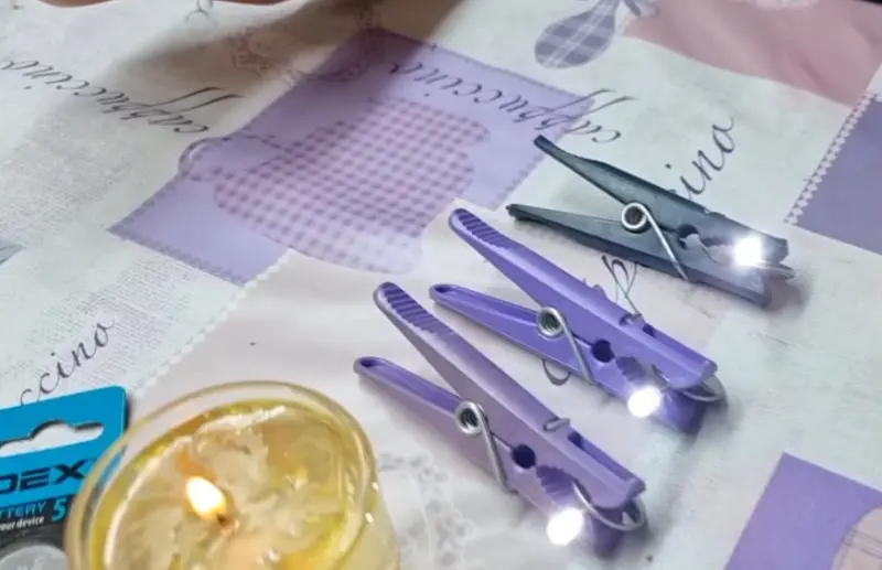Щоб щільно з'єднати світлодіоди з батарейками, автор радить використовувати прищіпку. Тоді буде щільний контакт і лампочки дадуть яскраве світло. При поганому контакті світло може бути слабким.