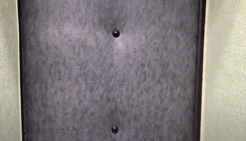 Закріплюється оббивка по всьому периметру дверей. Можна прибивати звичайними меблевими цвяхами.