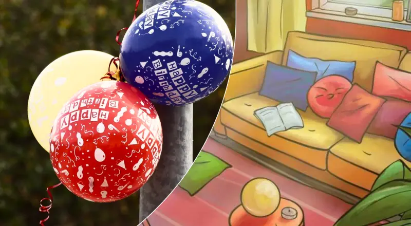 На зображенні вище ви бачите внутрішню частину вітальні. Навпроти великого вікна, що виходить у сад, стоїть диван, рослини в горщиках, столики та кілька подушок різної форми. Десь на цій картині захована повітряна кулька. Чи зможете ви її знайти? У цій головоломці вам потрібно знайти повітряну кульку за певний проміжок часу.