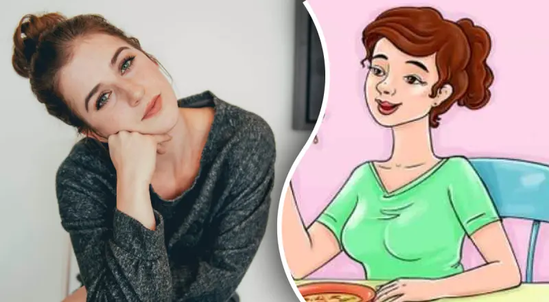 Ми бачимо на картинці дівчину за обіднім столом. Вона насолоджується їжею і разом з цим задумливо дивиться кудись в сторону.