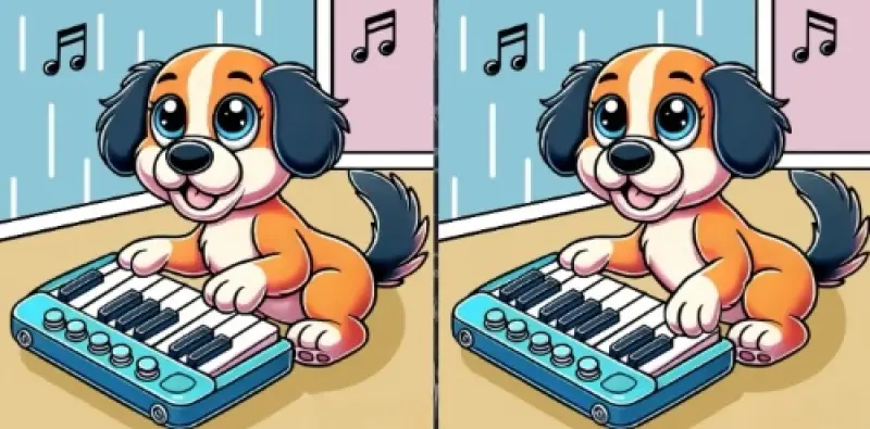Перед вами два майже однакових зображення собаки, що грає на піаніно. У цих картинках заховані три підступні відмінності, які чекають, коли їх розкриють. Чи зможете ви знайти їх усі? Ось у чому заковика: у вас є всього 19 секунд, щоб вирішити цю хитру головоломку!