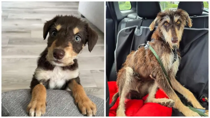Нещодавно на сторінці притулку DAWG у Facebook було опубліковано фотографії "до і після", що демонструють, як Роло виріс. На знімках видно, що у цуценяти були білі, рудувато-коричневі і темні відмітини, а також великі лапи - вірна ознака того, що він стане великим собакою.
