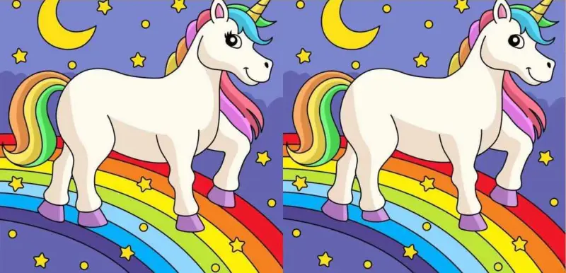У завданні представлені дві однакові картинки єдинорога. Хоча на перший погляд ці дві картинки здаються ідентичними, але це не так. На двох картинках є три відмінності.