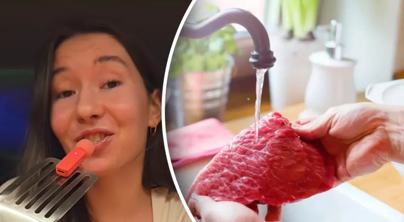 "Вони потраплять на стільницю, інше обладнання, інші продукти, на твій одяг. Тобто, по факту, ти зробиш цим тільки гірше, тому що бактерії тепер будуть не лише на м'ясі, а по всій кухні. І насправді толку з цього нуль, бо водою бактерії ти не вимиєш, вони нікуди звідти не дінуться", - пояснила блогерка.