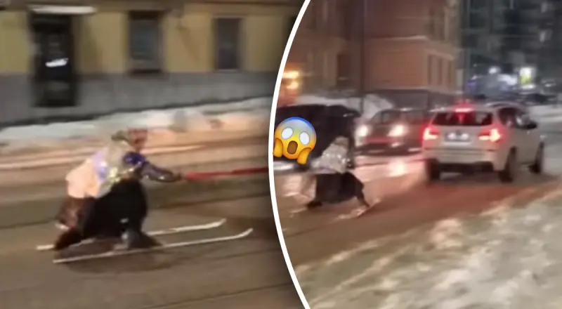 У Львові оштрафували "бабусю", яка каталася по місту на лижах, причепившись до автомобіля. Більше того, "її" дані передали до військкомату.