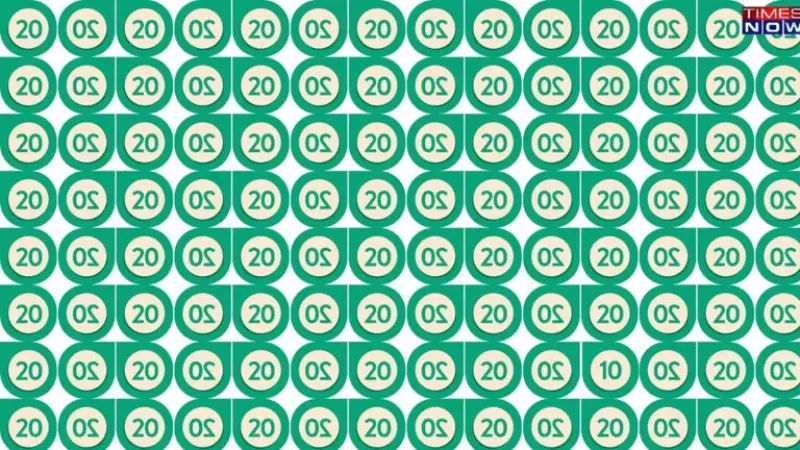 На малюнку - безліч цифр 20 на зеленому тлі. Фішка в тому, що деякі з них розташовані в неправильній формі, і це може нас заплутати. Завдання - знайти серед них цифру 10.