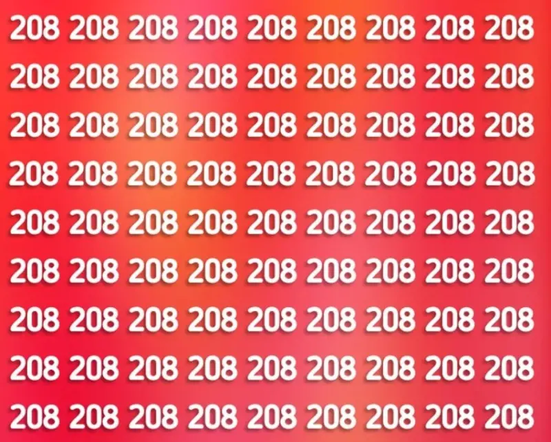 На картинці - таблиця з цифр 208. Але серед них є одна 2O8 - цифра, в якій замість нуля англійська літера O.