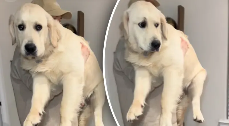 Коли власники ретривера це побачили, були шоковані. А сам собака кумедно відвернув мордочку, ніби незадоволений тим, що відбувається.