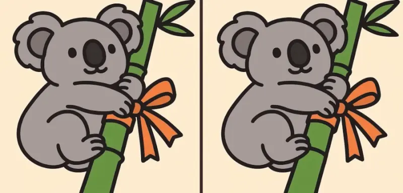 Отже, ви готові до наступного завдання? Уважно подивіться на два зображення коали, яка обіймає бамбук. На перший погляд вони можуть здатися однаковими, але на них приховані 3 невеликі відмінності. Думаєте, зможете знайти їх усі за 33 секунди? Спробуйте і перевірте свою гостроту зору!