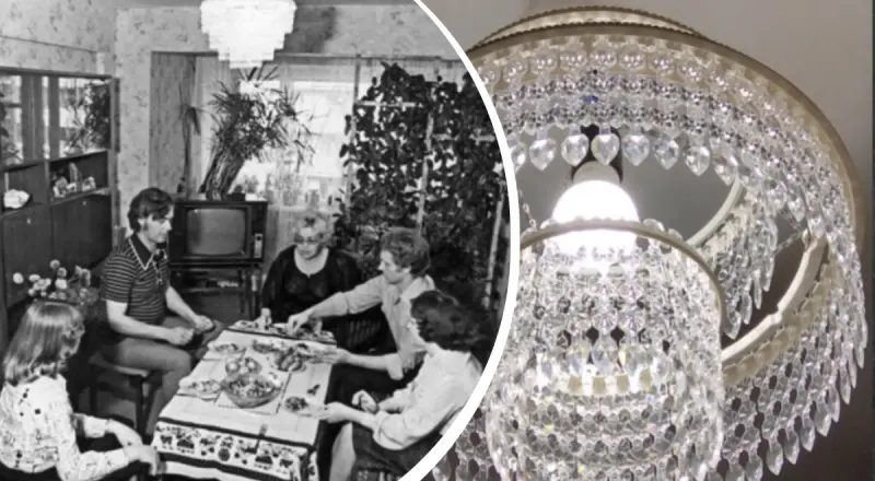 Освітлення теж мало демонструвати статус. Мрією багатьох була люстра "Каскад" із численними пластиковими підвісками, що імітували кришталь. Вона виглядала ефектно, але мала недоліки: пластик швидко жовтів, а конструкція була крихкою. Господині щороку знімали кожну деталь, мили її в оцтовому розчині й обережно вішали назад. Коли люстра сяяла під стелею, навіть звичайна "хрущовка" набувала вигляду кімнати з елементами розкоші.