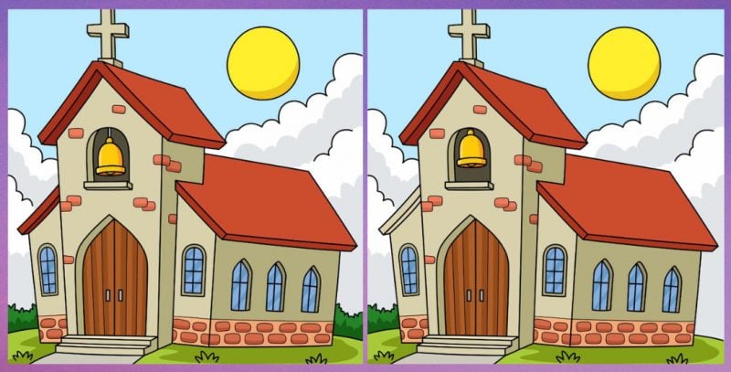 Отже, ви готові до наступного випробування? Погляньте на дві картинки з церквою. На перший погляд картинки здаються схожими, але на картинці заховані 3 невеликі відмінності. Чи зможете ви знайти їх усі всього за 19 секунд? Розгадайте цю головоломку і перевірте, наскільки ви пильні!