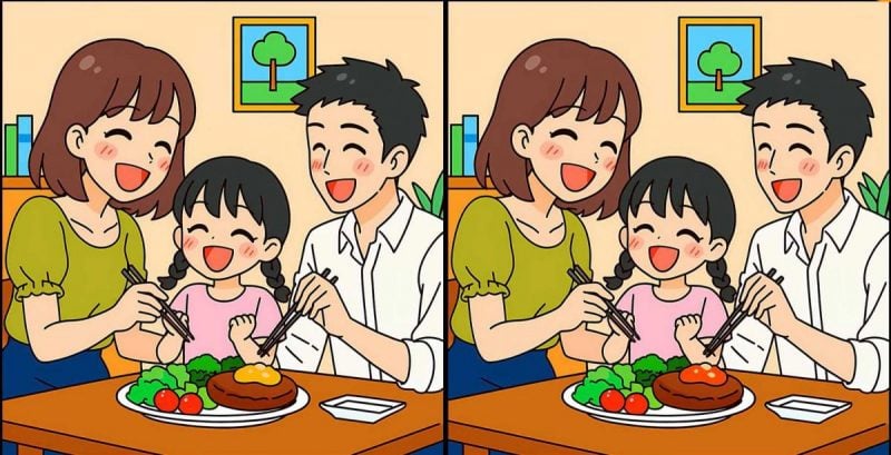 Отже, готові до наступного випробування? Уважно подивіться на дві картинки родини, яка обідає разом. На перший погляд, ці зображення можуть здатися однаковими, але якщо копнути глибше, ви помітите 3 крихітні відмінності, які майстерно заховані на зображенні. Чи зможете ви знайти їх усі всього за 19 секунд? Розгадайте цю головоломку і перевірте, наскільки ви пильні!