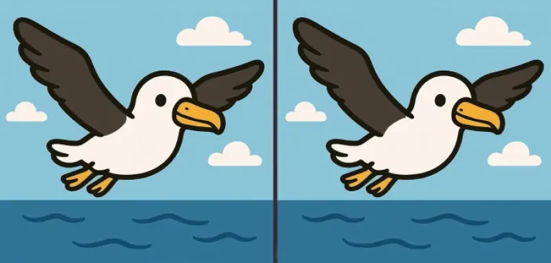 Отже, ви готові до нового завдання? Уважно подивіться на два зображення птаха, що летить над океаном. Спочатку картинки можуть здатися однаковими, але на них приховані 3 дрібні відмінності. Думаєте, зможете знайти їх усі за 31 секунду? Спробуйте і перевірте гостроту свого зору!