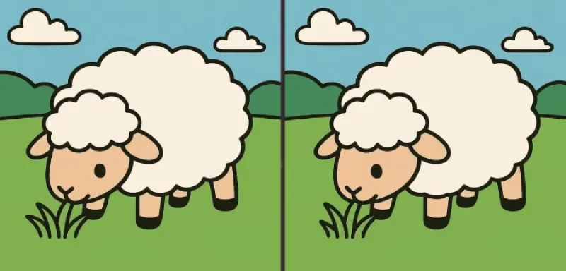 Отже, ви готові до наступного завдання? Уважно подивіться на два зображення овечки, яка поїдає траву. На перший погляд вони можуть здатися однаковими, але на них ховаються 3 невеликі відмінності. Думаєте, зможете знайти їх усі за 43 секунди? Спробуйте і перевірте свою гостроту зору!