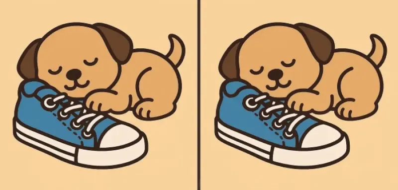Отже, ви готові до наступного завдання? Уважно подивіться на два зображення цуценяти, що спить на черевику. На перший погляд вони можуть здатися однаковими, але на них приховані 3 невеликі відмінності. Думаєте, зможете знайти їх усі за 51 секунду? Спробуйте і перевірте свою гостроту зору!