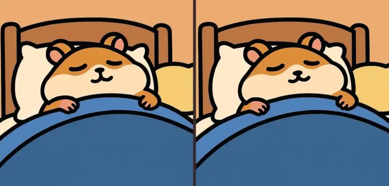 Отже, ви готові до наступного завдання? Уважно подивіться на два зображення сплячого хом'яка. На перший погляд вони можуть здатися однаковими, але на них ховаються 3 невеликі відмінності. Думаєте, зможете знайти їх усі за 29 секунд? Спробуйте і перевірте свою гостроту зору!