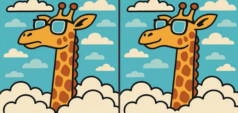 Отже, ви готові до наступного завдання? Уважно подивіться на два зображення жирафа в окулярах. На перший погляд вони можуть здатися однаковими, але на них ховаються 3 невеликі відмінності. Думаєте, зможете знайти їх усі за 23 секунди? Спробуйте і перевірте свою гостроту зору!
