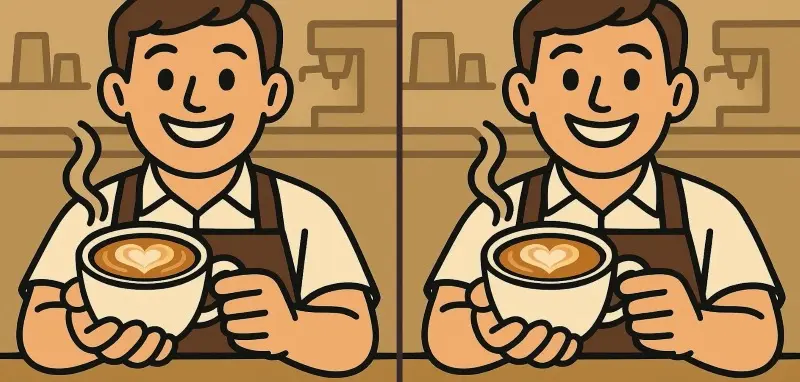 Готові перевірити свою спостережливість? Погляньте на дві картинки з баристою. Спочатку вони виглядають ідентично, проте між ними приховані три ледь помітні відмінності. Зможете виявити їх за 45 секунд?