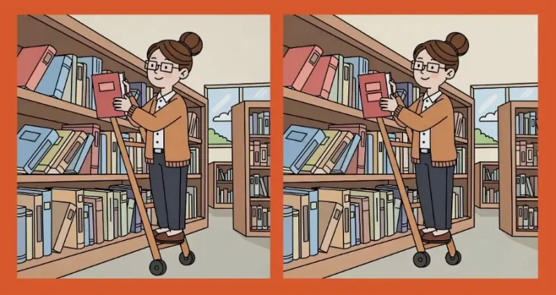Цього разу вам пропонується порівняти дві картинки з бібліотекарем. На перший погляд вони повністю збігаються, проте між ними заховані три відмінності. Ваше завдання — виявити їх всього за 43 секунди.
