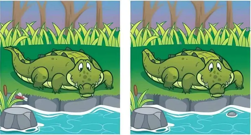 Готові перевірити себе? Уважно розгляньте зображення з крокодилом. На перший погляд вони абсолютно однакові, але це лише ілюзія — між ними заховано 5 відмінностей. Чи зможете ви знайти їх усі за 13 секунд?