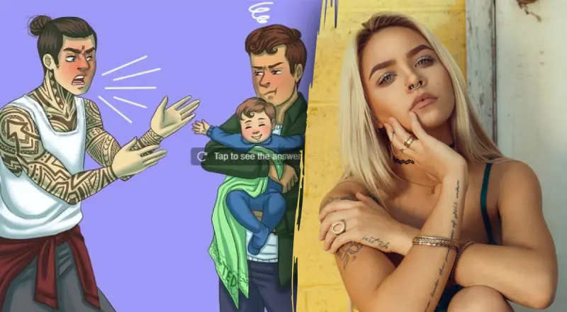 Якщо уважно придивитися, то помітно, що на ковдрі, у яку загорнута дитина, написано ім’я TED. І таке ж ім’я є на татуюванні чоловіка, який стоїть зліва. Отже він і є батьком дитини.