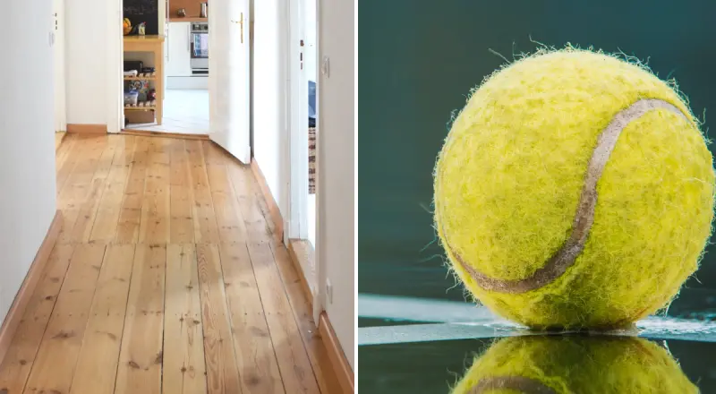 За допомогою м'яча, який має товсту поверхню, можна легко усунути подряпини та жодним чином не пошкодивши підлогу. Також вона порадила, як відновити дерев'яну підлогу та зробити її яскравішою.