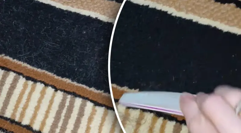 Нею треба кілька разів потерти поверхню килима і вся шерсть збереться у клубок. Блогерка стверджує, що пилочка справляється з шерстю значно краще, ніж будь-які спеціальні засоби для очищення килимів.