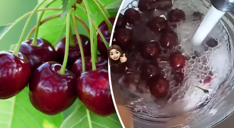 Сольовий розчин: Замочіть черешню в сольовому розчині (1 столова ложка солі на літр води) на 15-20 хвилин. Сіль змусить черв'яків покинути ягоди.