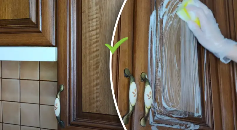 Харчової соди має бути достатньо, щоб видалити жир з кухонних меблів.