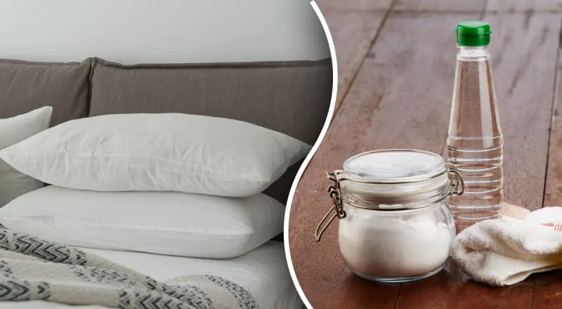 Більшість подушок можна почистити за допомогою харчової соди та оцту і це займає всього кілька хвилин. Достатньо почекати 30 хвилин, перш ніж подушки можна буде висушити та покласти назад на ліжко.