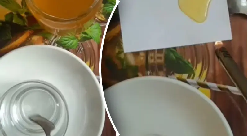 Щоб перевірити, чи є в медові домішки (наприклад, борошно або крохмаль), знадобиться йод. Беремо трохи меду, наливаємо його в порожню склянку та додаємо краплю йоду. Якщо колір зміниться на блакитний або синій – у меді є домішки. Якщо колір не змінюється – мед натуральний. Для достовірності експерименту додаємо воду і перемішуємо: якщо колір залишається незмінним – мед якісний.