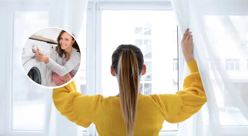 Оптимальний режим - близько години при температурі 40°C. Завершальний етап не менш важливий: тюль потрібно повісити на вікно одразу після прання. Волога тканина розправляється під власною вагою, тому виглядає охайно й не потребує прасування.