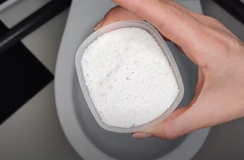 Використовуйте пральний порошок: Насипте близько 30 г порошку на дно унітазу.