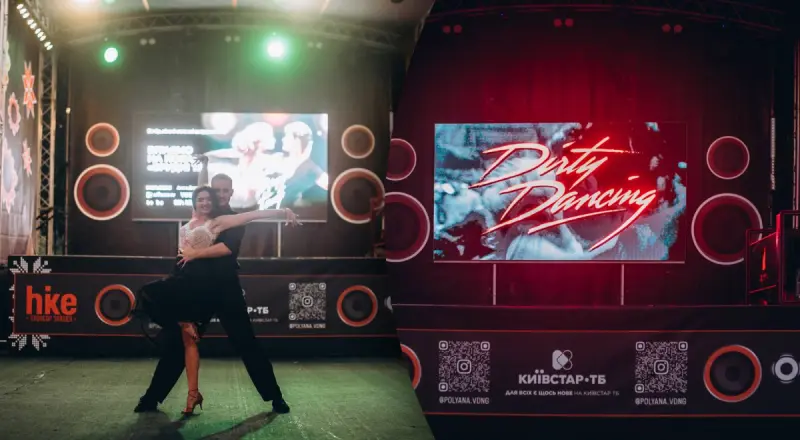 Програма вечора поєднала кіно й танці: глядачі почули лекцію від Марини Шульц із маловідомими фактами про стрічку, побачили танцювальний сюрприз від викладачів студії Goldance та учасників «Танців з зірками» Дмитра Варанкіна й Анни Берднікової. І, звісно, перегляд ленендарного фільму «Брудні танці» в кінотеатрі під відкритим небом, а також приємні сюпризи відКиївстар ТБ.