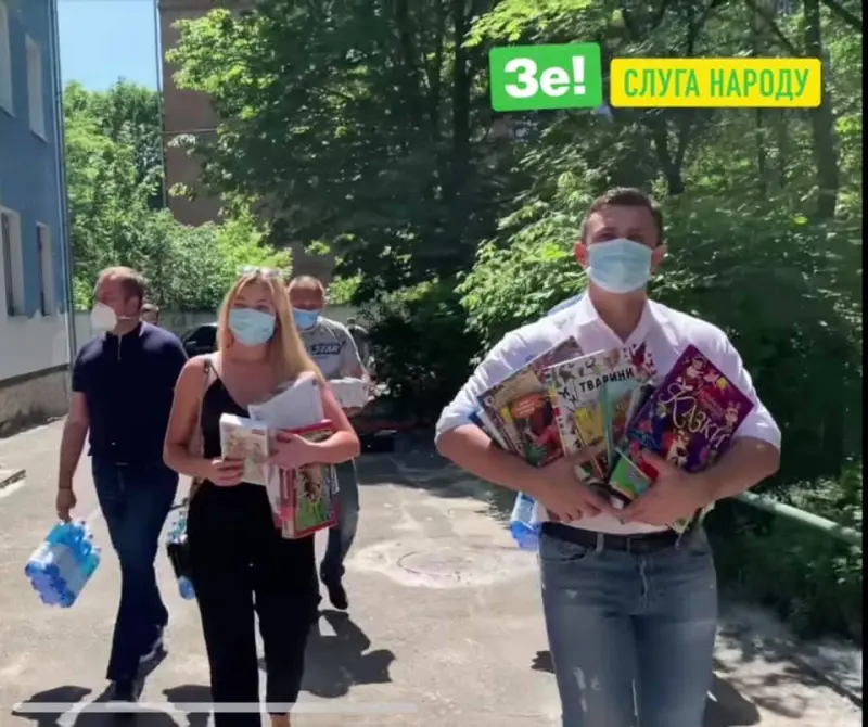 Нардеп від Слуги народу Микола Тищенко, котрий рветься у мери столиці, днями їздив до лікарні для того, щоб презентувати книги дітям. На фото, яке поширила прес-служба партії видно, що "він несе віялом ці дитячі книжки, щоб на камеру було видно, що їх кілька штук і вони кольорові".