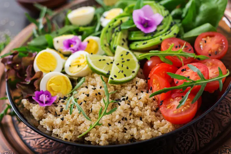 У великій мисці змішуємо кіноа і наші овочі. Відварюємо яйце, або робимо яйце пашот. Якщо яйце відварили поріжте його кубиками, додайте все до найкориснішого сніданку, за бажанням посолити або поперчити, крапельку додати оливкової олії, все ще раз перемішати.