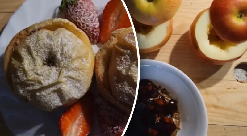 На Ютуб каналі «У бабусі» розповідають про те, як краще запікати яблука у мікрохвильовій печі. Для початку потрібно взяти кілька яблук, добре їх помити, обтерти. Покласти вже помиті і обсохлі яблука в целофановий пакетик, зав’язати. Кладемо у мікрохвильовку, ставимо на 5 хвилин. Смачні печені яблука готові!