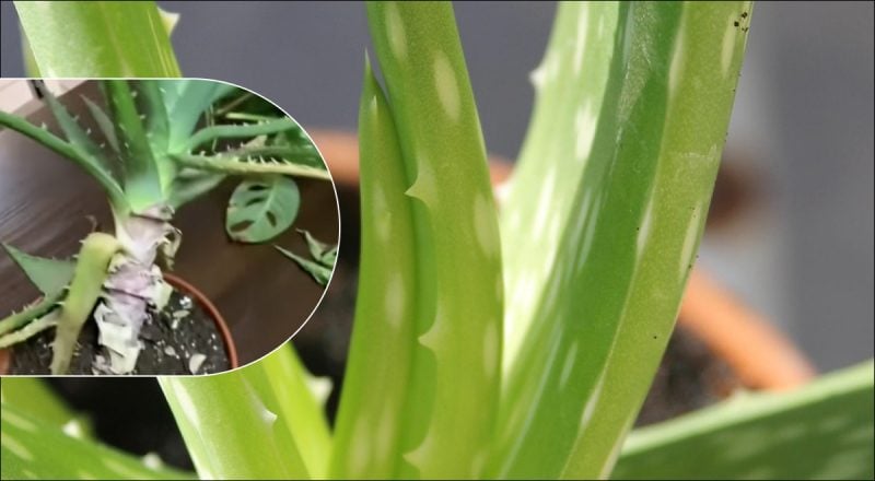 Якщо алое занадто довго обходиться без води, у нього може з'явитися коричневе листя біля основи. У цьому разі його потрібно обрізати і скорегувати полив.