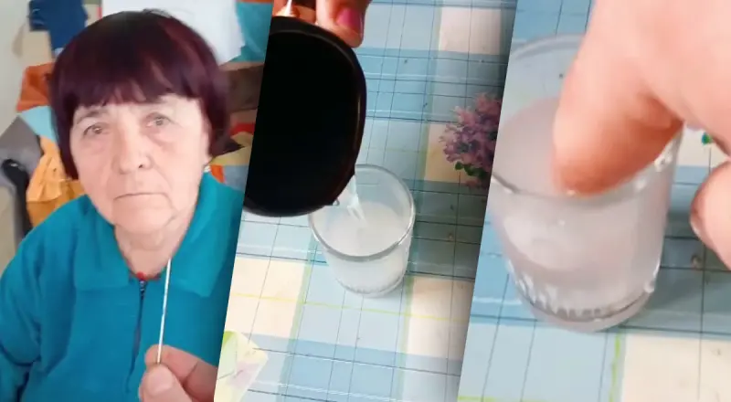 Пенсіонерка-блогерка наголошує, що після цього потрібно засунути палець із скалкою в отриманий розчин і протримати 3 хвилини.