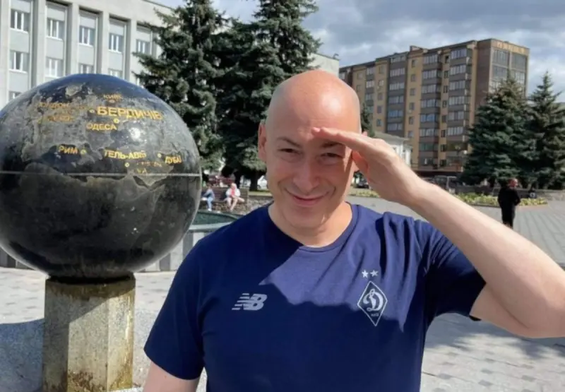 На опублікованому фото Гордон постав у білій сорочці та в'язаному джемпері, в руках він тримав мікрофон. На голові у журналіста виднілося густе волосся, зараз же знаменитість повністю лисий.