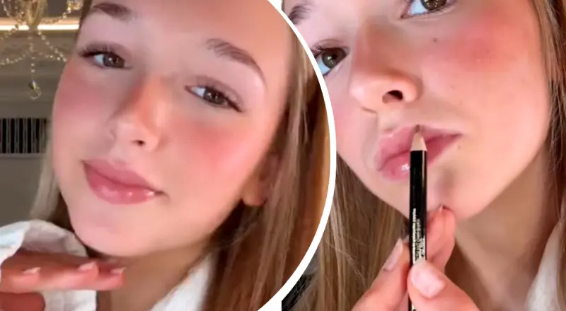 Тримаючи завиті вії та рум'яні щоки, Гарпер спочатку використовувала олівець для губ. Вона професійно підвела губи засобом, а потім акуратно розтушувала його пензлем.