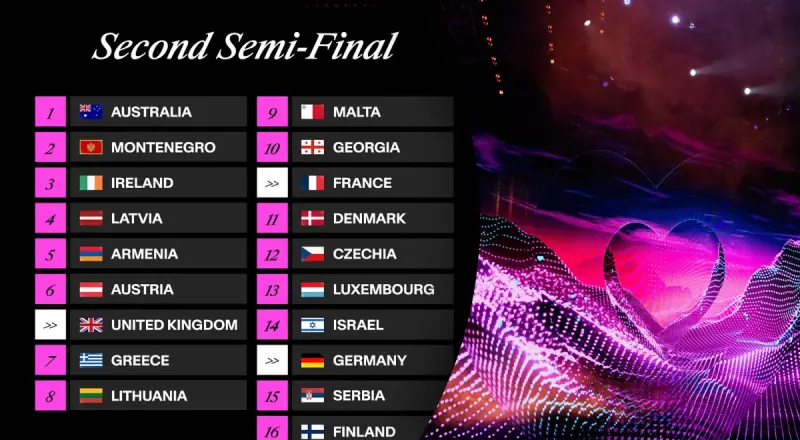 Сьогодні, 15 травня, на арені St. Jakobshalle в Базелі вирішиться доля другої десятки фіналістів Євробачення-2025. На сцену вийдуть представники 16 країн-учасниць і три країни з Великої п'ятірки - Великобританія, Німеччина і Франція (вони пройдуть у фінал автоматично - прим. редактора).