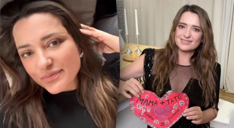 Зірка зворушливо привітала чоловіка з Днем всіх закоханих і показала валентинку, яку для пари зробили їхні дочки. На червоному сердечку можна розглянути написи "Мама + тато".